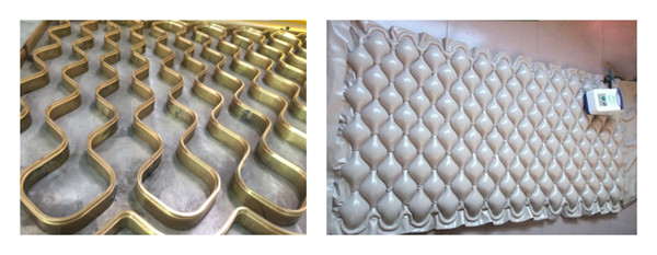 防褥瘡充氣床墊分為球形、波動噴氣型、條形波動型等多種款式,高周波焊接機是生產防褥瘡充氣床墊的主要設備。本機型專門針對球形床墊一次焊接成型,機器采用臺灣先進工藝生產制造,焊接面積可調,廠家配置相應模具。