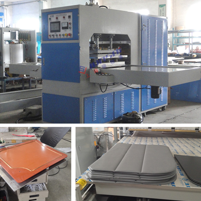 3. 大型四柱龍門式:四柱設計,穩固結實。兩邊滑輪推動位置準確靈活。適用于大面積的塑料產品的焊接,熱合壓花。